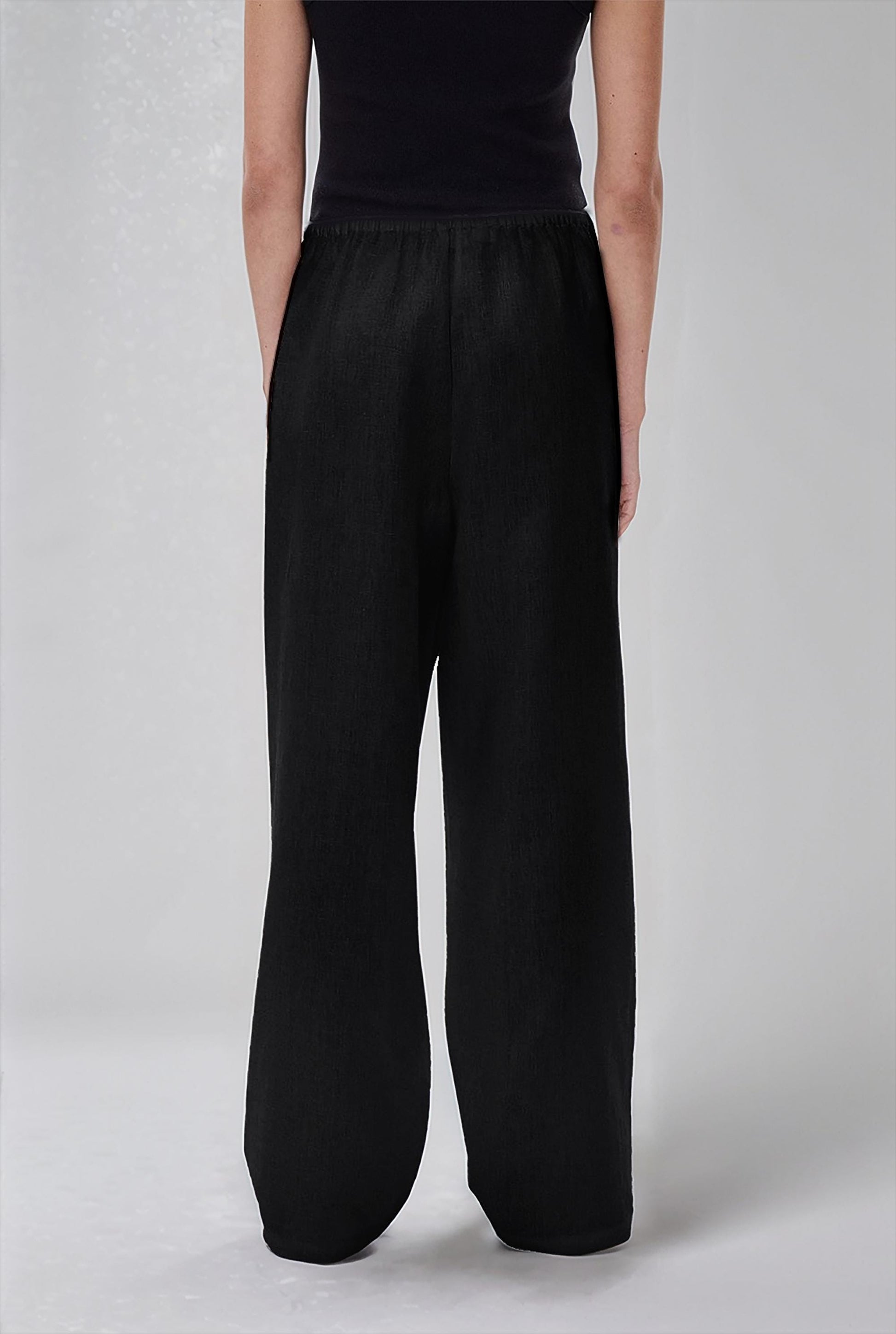Black Wide-Leg Linen Pants – High-Waisted, Loose Fit, Casual Lounge Trousers for Women | SKU.25T11T6A