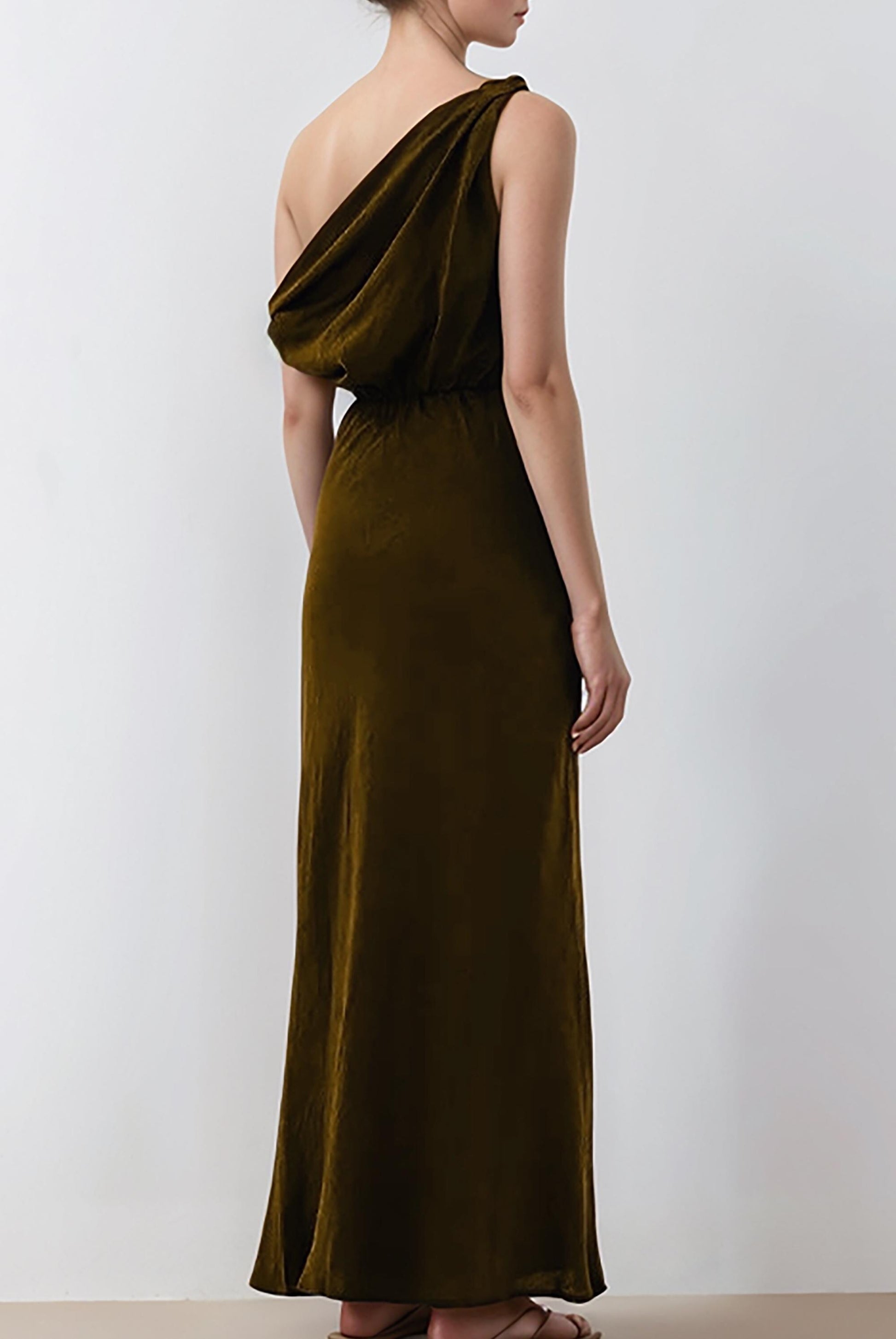 - Design: One-shoulder gown with asymmetrical neckline for a modern, sophisticated look