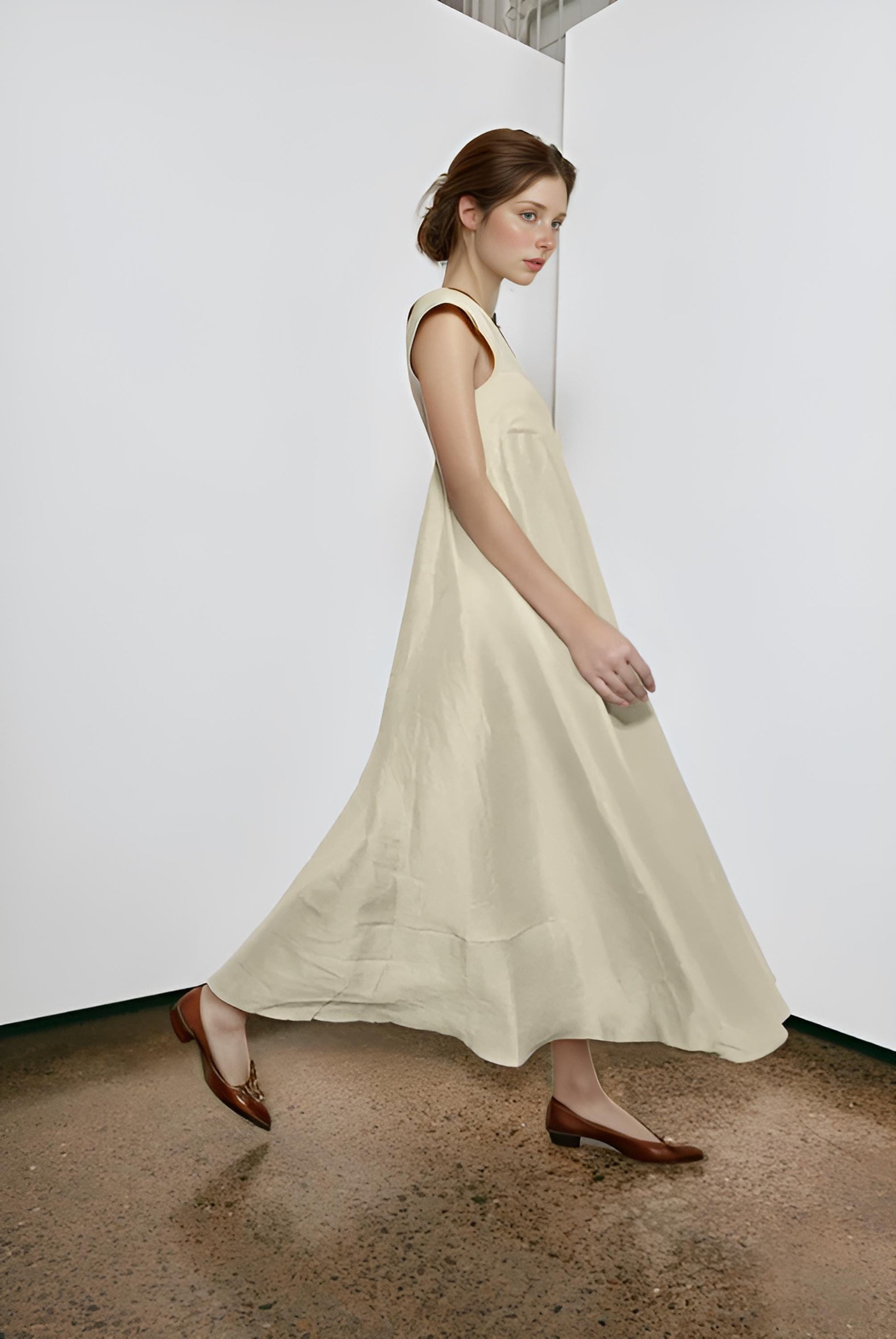 Elegant Linen Maxi Dress – Minimalist Summer Dress, Sleeveless Flowy Sundress, Boho Chic Outfit, Handmade Resort Wear | SKU.25T10T3G