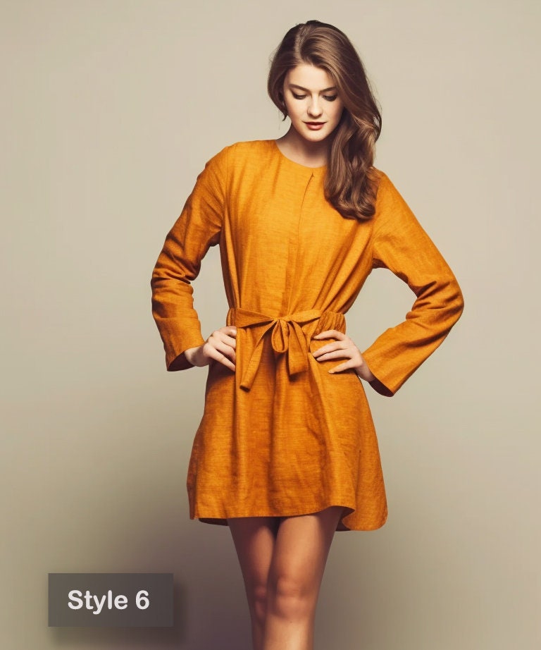 Short Linen Bridesmaid Dress | Mini Linen Wrap Dress with Pockets | Mustard | Modest and Wedding Guest Dress | Personalizable | 230510A