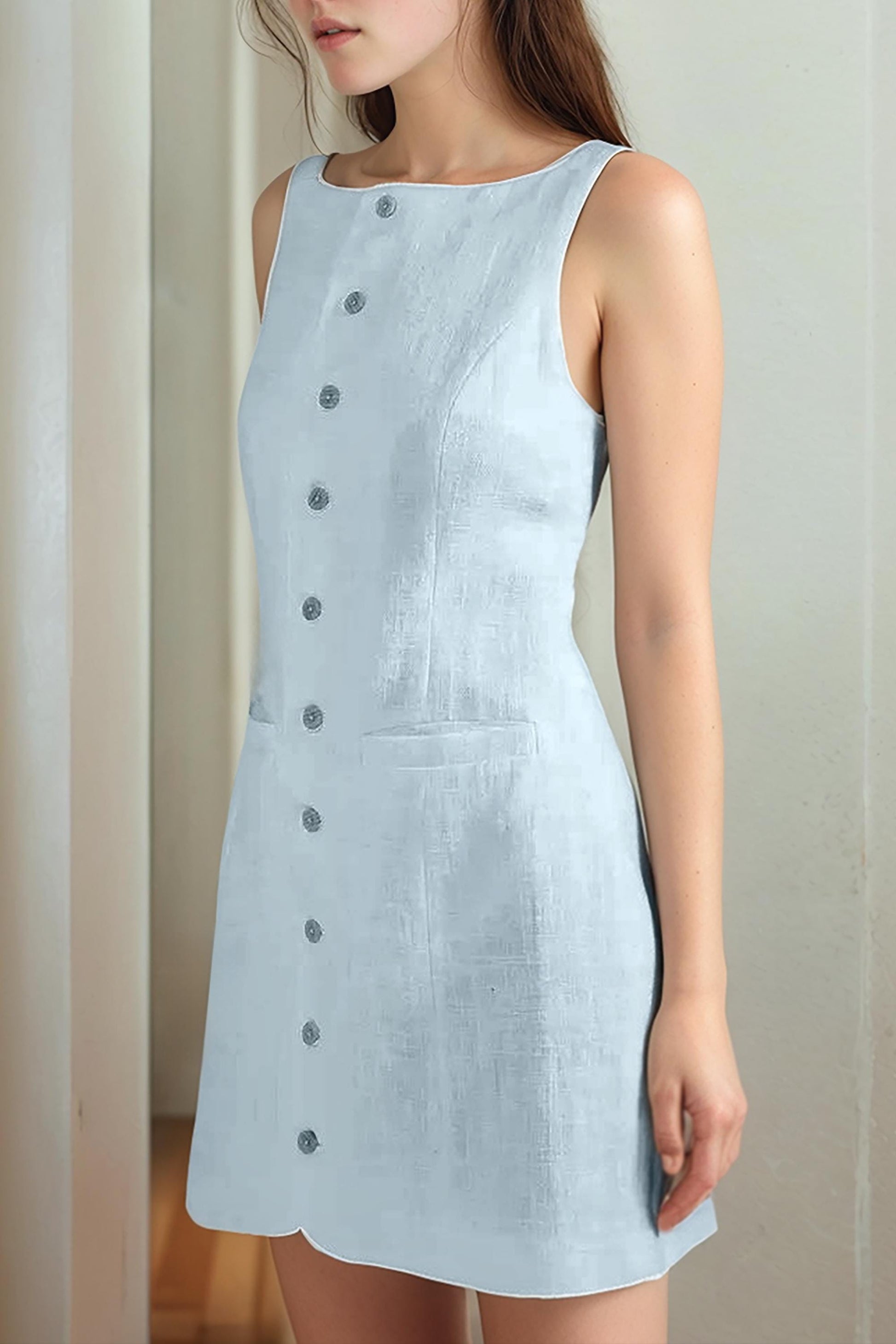 Sleeveless Linen Button-Down Mini Dress – Summer Casual A-Line Dress| SKU.25T11T7C